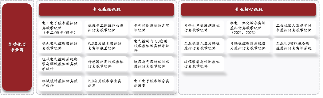 通過專業基礎課、專業核心課、專業拓展課的延伸拓展,提供圍繞自動控制相關基礎理論、核心能力及擴展應用的課程內容,通過軟件及資源、硬件設備和工程實訓的體系,為教學提供全方位支撐。